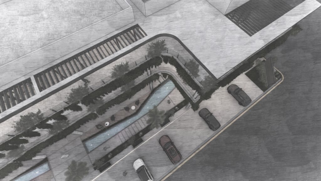 • مواقف السيارات المدمجة: تخطيط ذكي لمناطق انتظار السيارات في المحيط الخارجي مع تسهيل حركة وصول المشاة إلى الفناء الداخلي.
