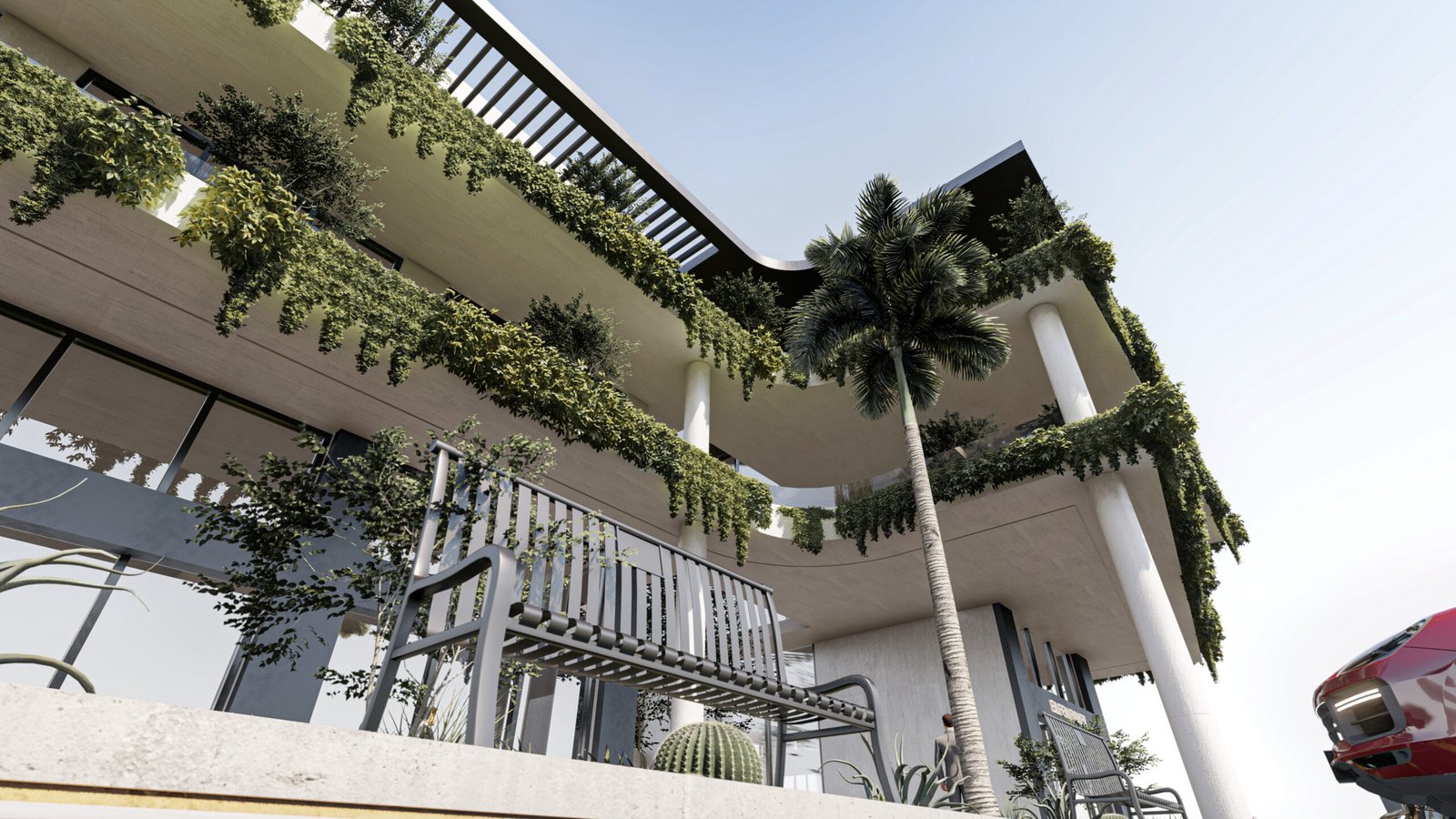 • المدرجات الخضراء (Green Terraces): شرفات متصلة تغلف الطوابق العلوية بنباتات طبيعية، مما يعزز الاستدامة ويمنح المبنى مظهراً متجدداً باستمرار.