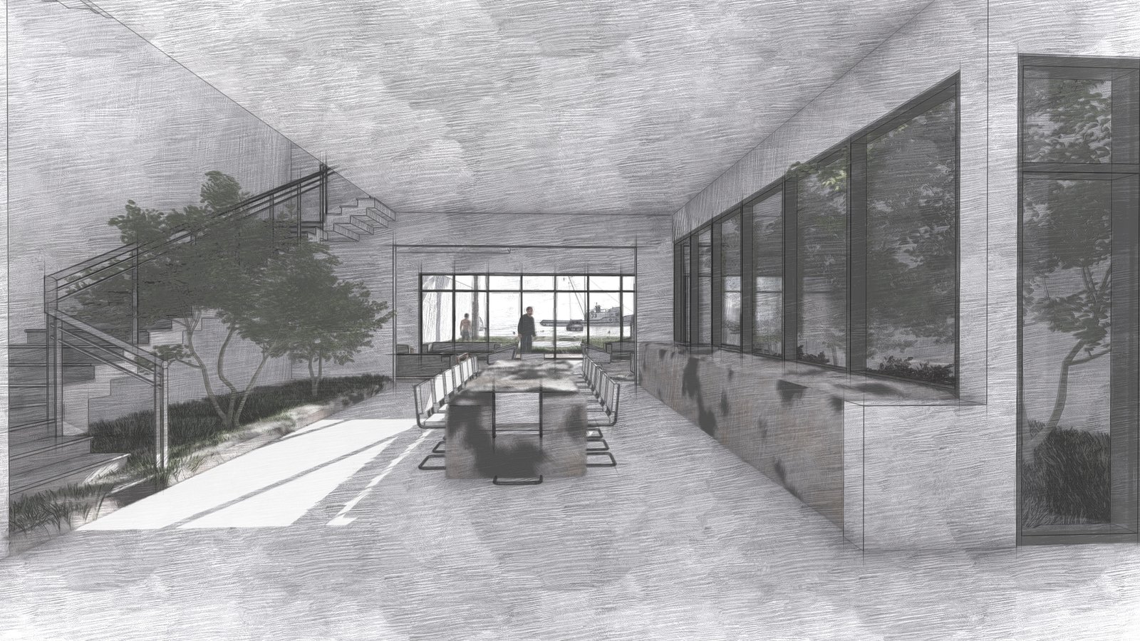 • نوافذ شريطية واسعة: تعزيز الاتصال البصري بالخارج والسماح بتدفق الإضاءة الطبيعية لأكبر مساحة ممكنة.