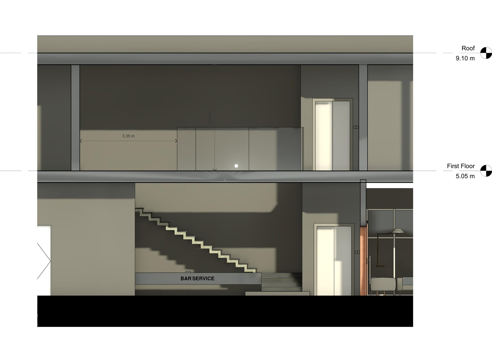 | المقاطع الهندسية (Sections) | توضيح مناسيب الارتفاعات، حركة السلالم، وعلاقة الكتلة بالفراغ المفتوح |