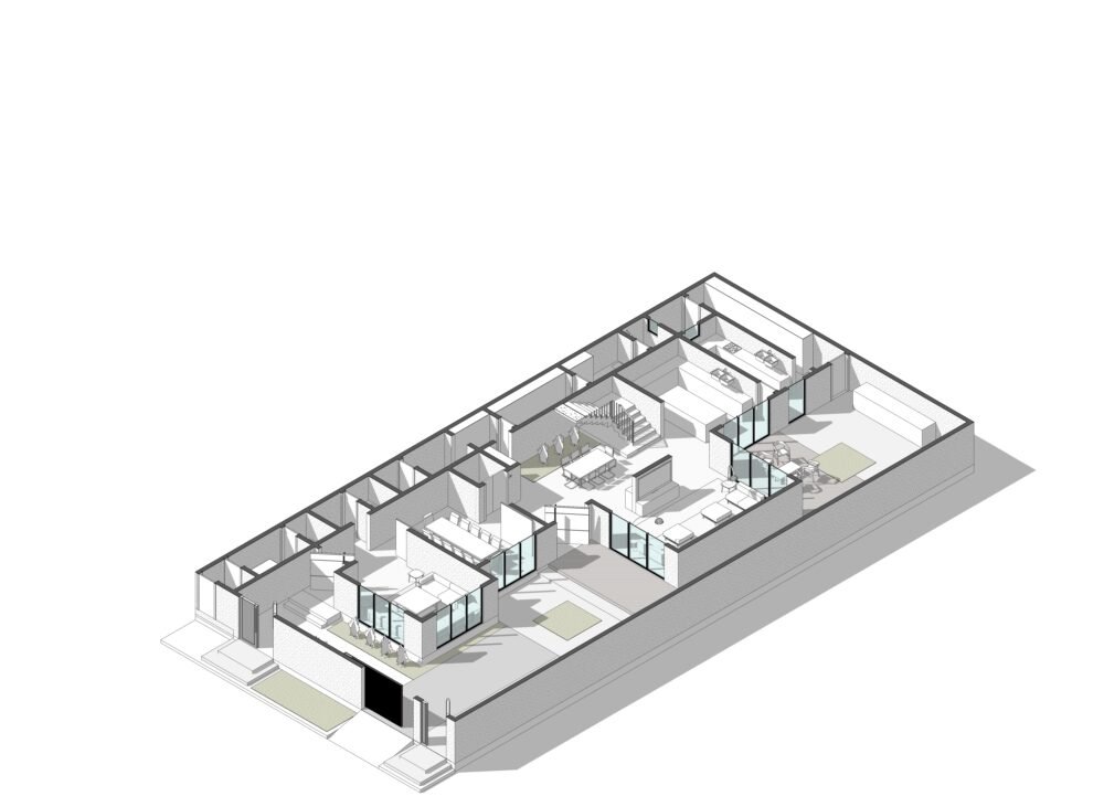 يُبرز هذا المشروع براعة التخطيط المعماري للمساحات الطولية، سواء للفلل أو الشقق السكنية الفاخرة. يعتمد التصميم على توزيع وظيفي متسلسل يضمن انسيابية الحركة والخصوصية التامة، مع استغلال أمثل لكل متر مربع. يوضح المسقط المنظوري (Isometric) كيفية ترابط مساحات المعيشة المفتوحة مع التراسات الخارجية، مما يوفر بيئة سكنية عملية، مريحة، وعصرية تلبي احتياجات العائلة الحديثة.