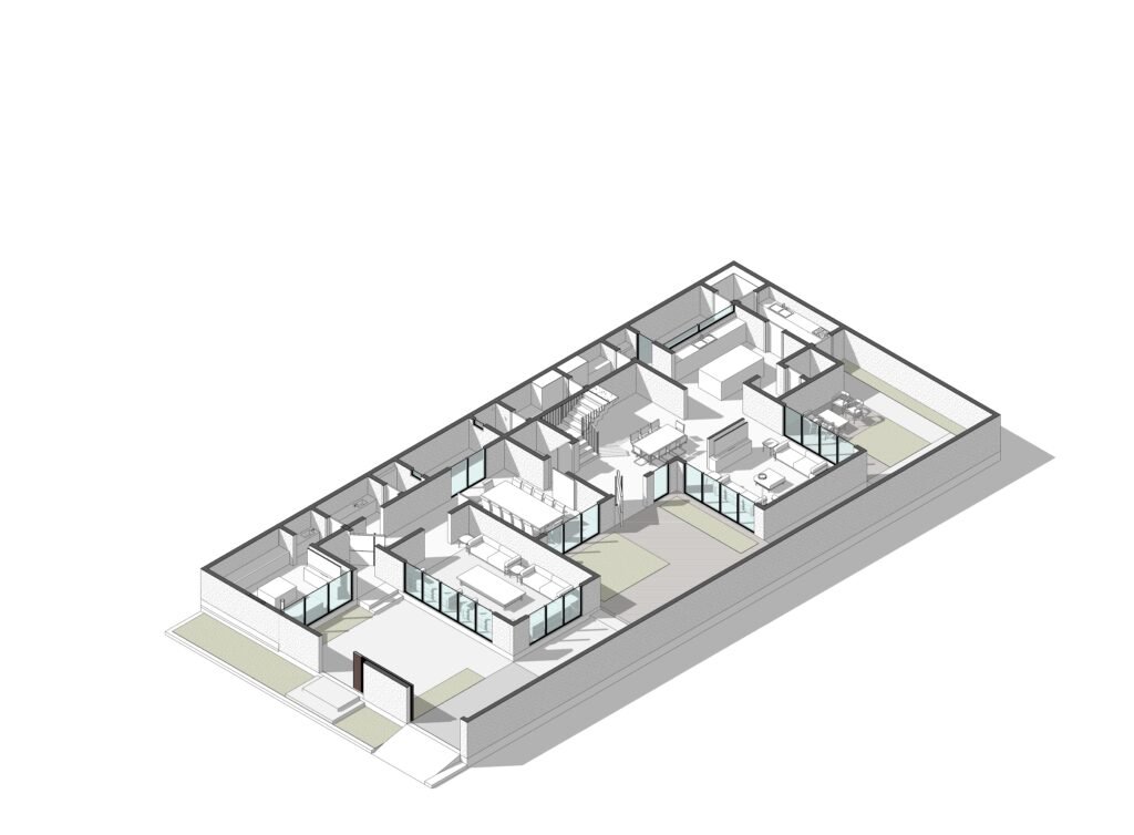 يُبرز هذا المشروع براعة التخطيط المعماري للمساحات الطولية، سواء للفلل أو الشقق السكنية الفاخرة. يعتمد التصميم على توزيع وظيفي متسلسل يضمن انسيابية الحركة والخصوصية التامة، مع استغلال أمثل لكل متر مربع. يوضح المسقط المنظوري (Isometric) كيفية ترابط مساحات المعيشة المفتوحة مع التراسات الخارجية، مما يوفر بيئة سكنية عملية، مريحة، وعصرية تلبي احتياجات العائلة الحديثة.